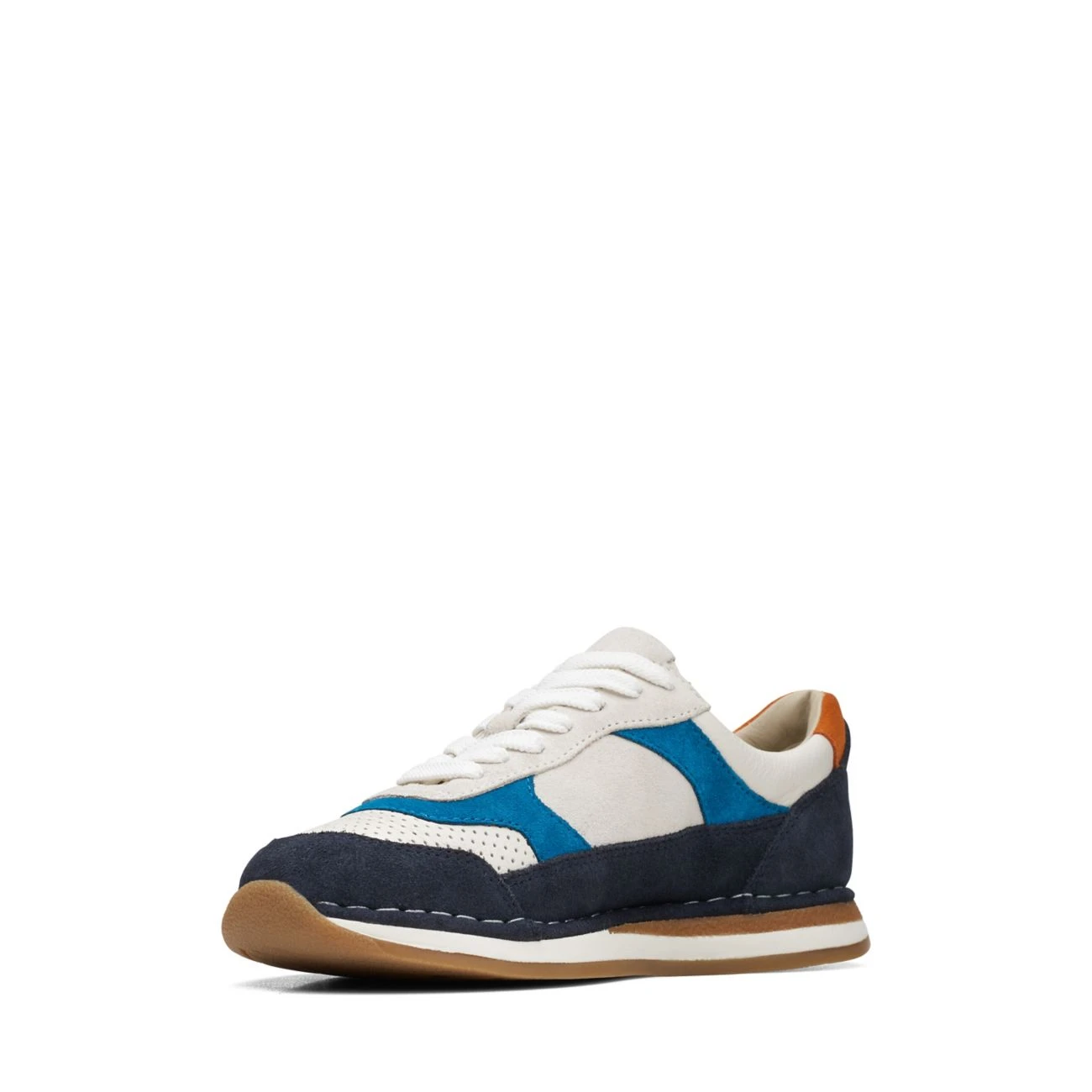 - Navy, blue, orange and white suede upper