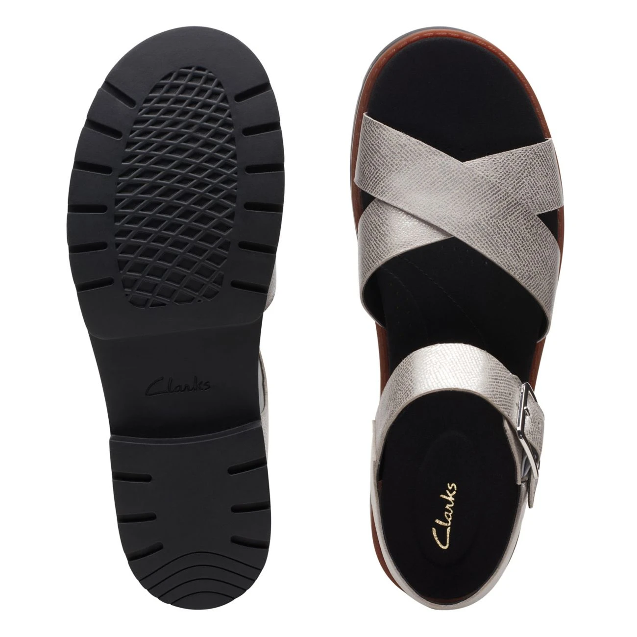- Premium silver metallic leather upper