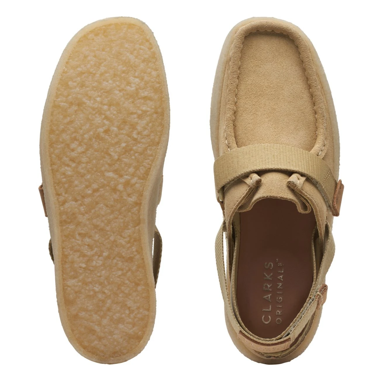A slingback iteration of our Wallabee Cup Lo, Wallacup Strap combines a breezy open heel with adjustable straps for effortlessly elegant summer wear. Timeless black suede uppers and a natural crepe sole bring a heritage feel to this truly versatile profile.